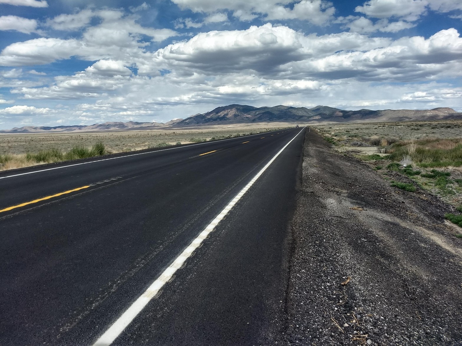 Route 50 across Nevada comes close to following the old Pony Express trail. There were ruins of Pony Express stations and stage coach stations. Every so often there was an historical marker or a sign that said the route crossed the road here. It must have been a hot and lonely ride for those brave kids. I was so thankful for Kathie with her water and food. I think there was only one convenience store we saw all day.