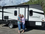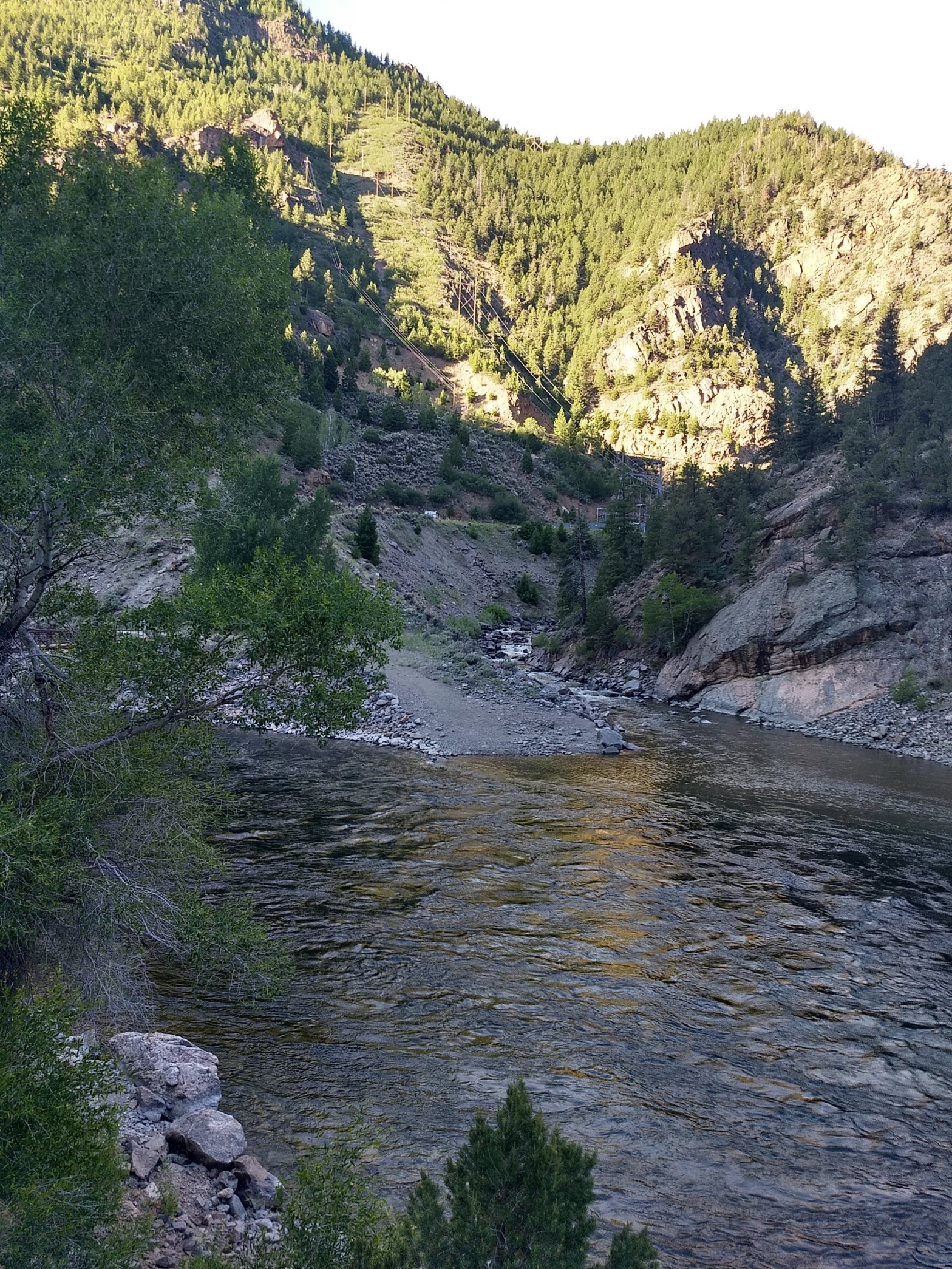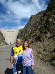 At the bottom of the pass is the very small town of Cimarron, CO. One bar/convenience store combo and a National Park Service visitor center on narrow gauge railroads. Kathie was parked there and fixing dinner. Just after I arrived a truck pulls up and the lady inside asked if I was the other half of Kathryn. She introduced herself as Jan France, a local resident who was good friends with Kathryn. She is also the COO of America’s Disaster Relief, Charity Food Truck. When there is a disaster Jan and her husband drive a 40 foot trailer that serves as a kitchen to feed the people at the disaster. Her husband is the chef. Evidently earlier in the day, Kathie had met Jan at her homestead. She gave us the 15 minute lesson on how to control the trailer in the mountains. Jan is a delightful lady that also said she wanted to show us the dam in Cimarron. Kathie turned off dinner and we hopped into her truck and went for a drive up the canyon. The canyon was steep walled and halfway up the canyon had a restored narrow gauge locomotive and fuel car. The road ends at the base of Morrow Point dam, a cement dam that is part of the Gunnison dam system. Jan was excited to wait at the parking lot while Kathie hiked to the rivers below. She loved to show off her area. It wasn’t until she had lived there for two years that she found the spot she was so eager to show us. She offered us meals and any other support she could give. We feel we will always have a choice friend in Jan France.