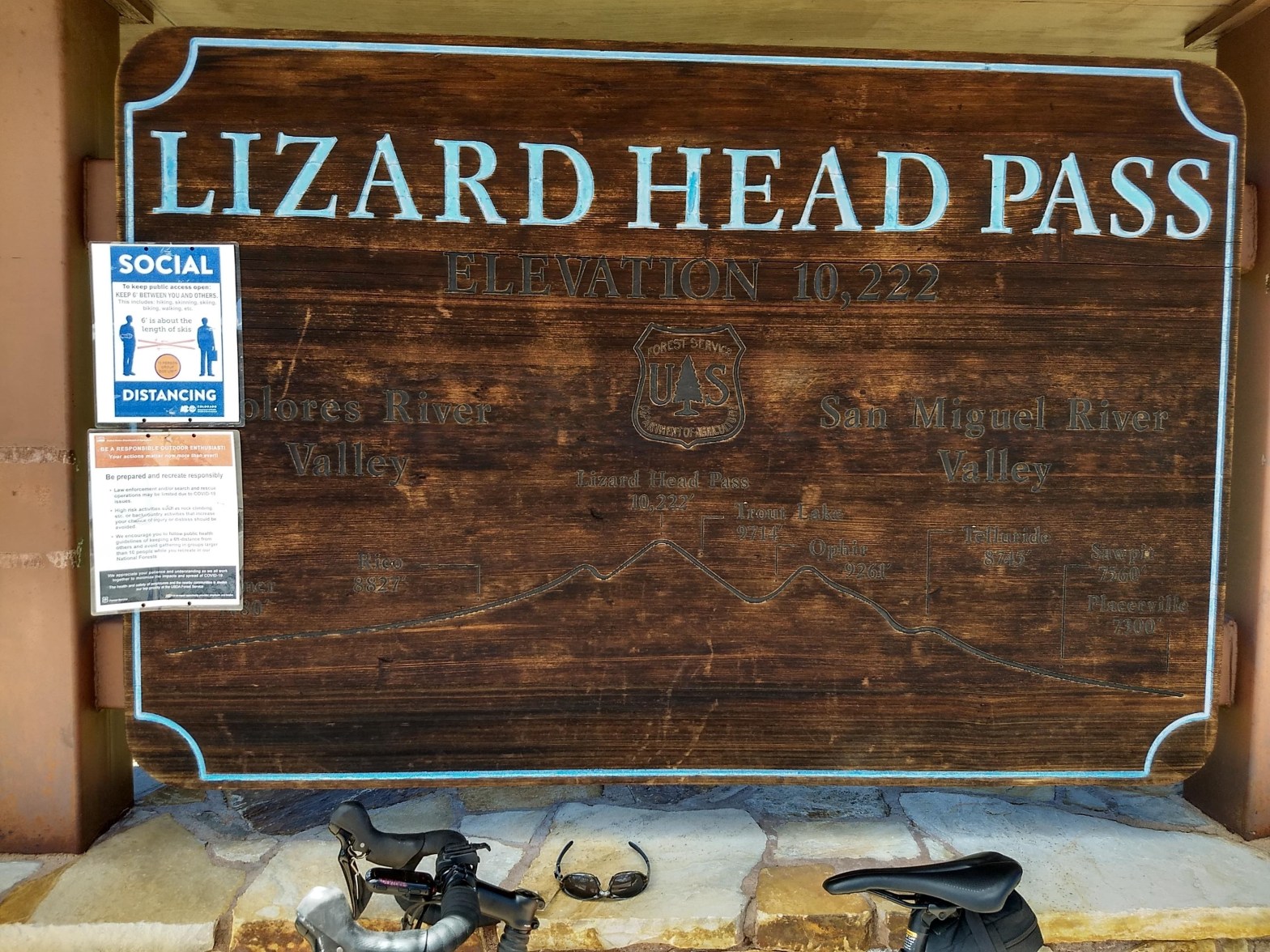 I did a lot of climbing today up to Lizard Head Pass at 10,222 feet over Telluride, CO. The Colorado Rockies are such beautiful mountains and whether climbing or descending they can be exciting. I passed four cyclists climbing the other side of the pass. I think their side of the mountain seemed steeper. I was sure glad I had disc brakes on my bike as I descended from the summit to the Telluride turnoff.